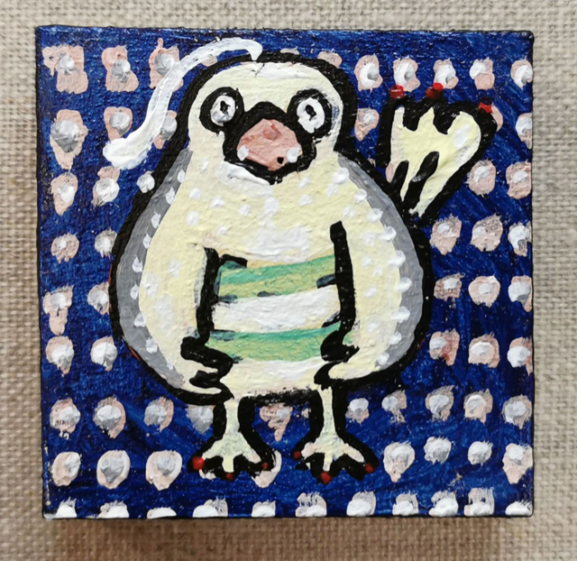 Mini-tableau 5,2 cm x 5,2 cm, épaisseur 1,5cm. Peinture acrylique sur bois. Pièce unique
