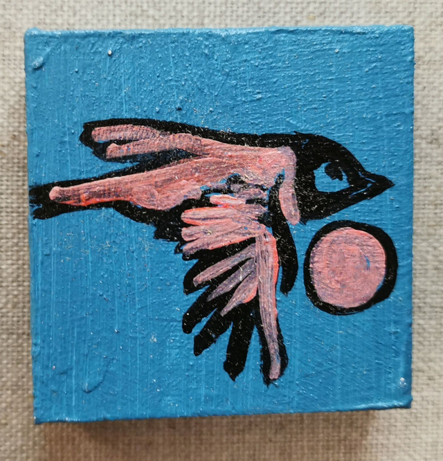 Mini-tableau 5,2 cm x 5,2 cm, épaisseur 1,5cm. Peinture acrylique sur bois. Pièce unique