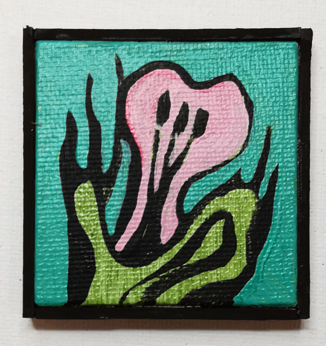 Mini-tableau 5cm x 5 cm. toile coton sur carton. Peinture acrylique. Pièce unique