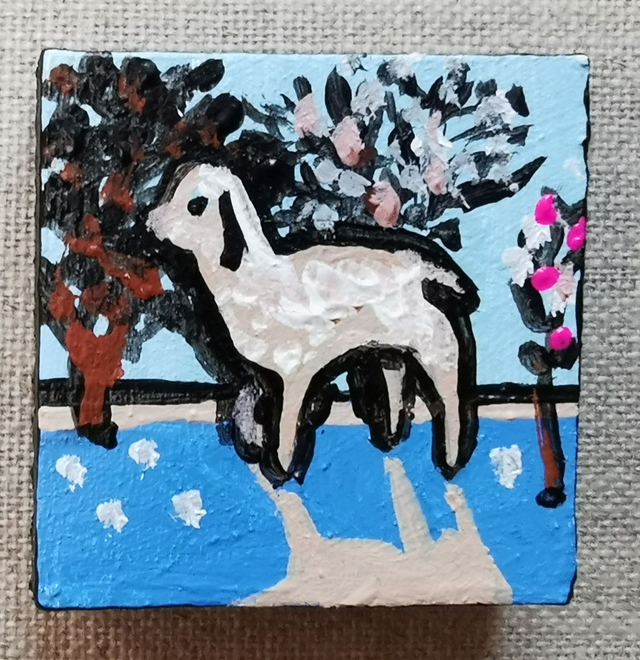 Mini-tableau 5,3 cm x 5,3 cm, épaisseur 1,5cm. Peinture acrylique sur bois. Pièce unique