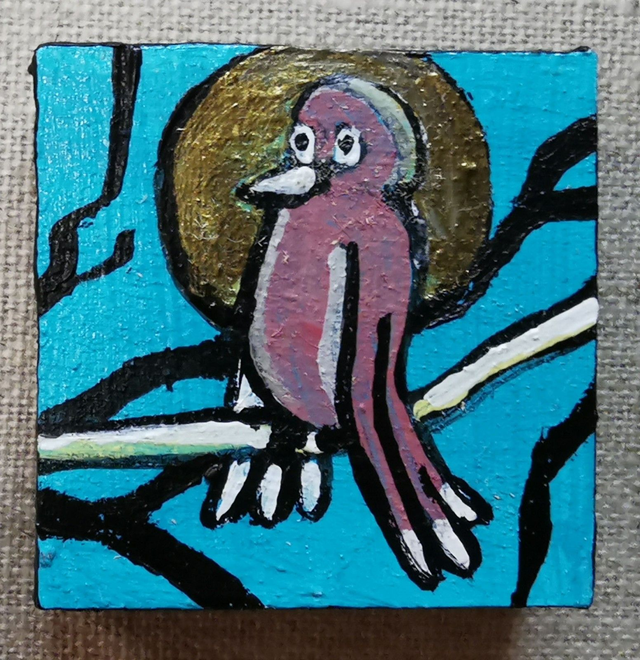 Mini-tableau 5,3 cm x 5,3 cm, épaisseur 1,5cm. Peinture acrylique sur bois. Pièce unique