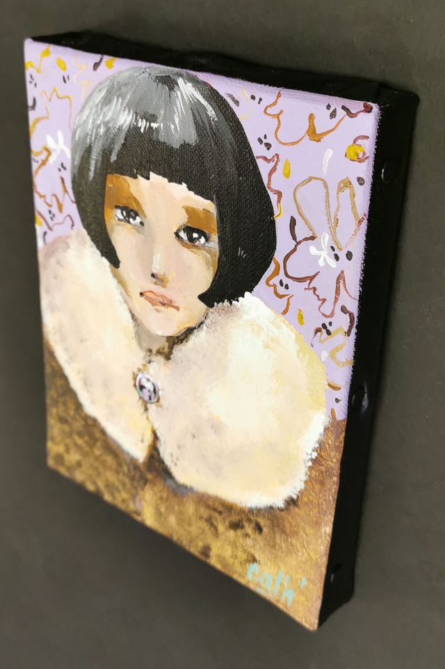 Acrylique sur toile tendue en lin. 14cm X 18cm. Pièce unique. Création Catherine Pulvermuller (Cath') 2023. Idée cadeau original